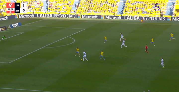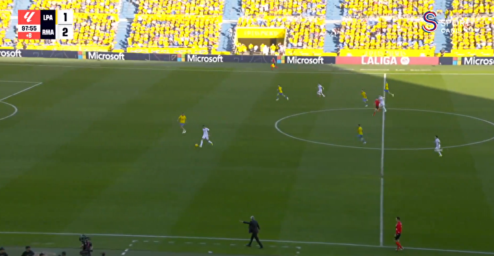 Kendi yarı sahasında atağı başlatan isim olan Arda, uzun pasla topu Joselu ile buluşturdu.