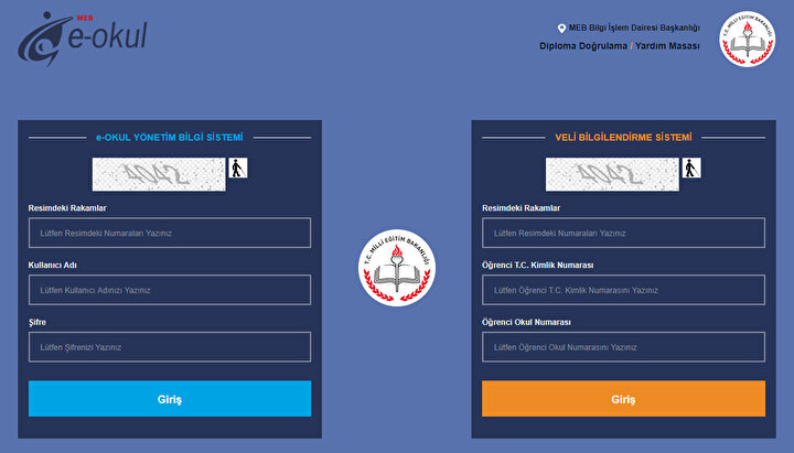 Ardından sağ tarafta yer alan “VELİ BİLGİLENDİRME SİSTEMİ” yazan yerin altındaki “Resimdeki Rakamlar”, “Öğrenci T.C. Kimlik Numarası” ve “Öğrenci Okul Numarası” yazan yeri eksiksizce doldurun.
