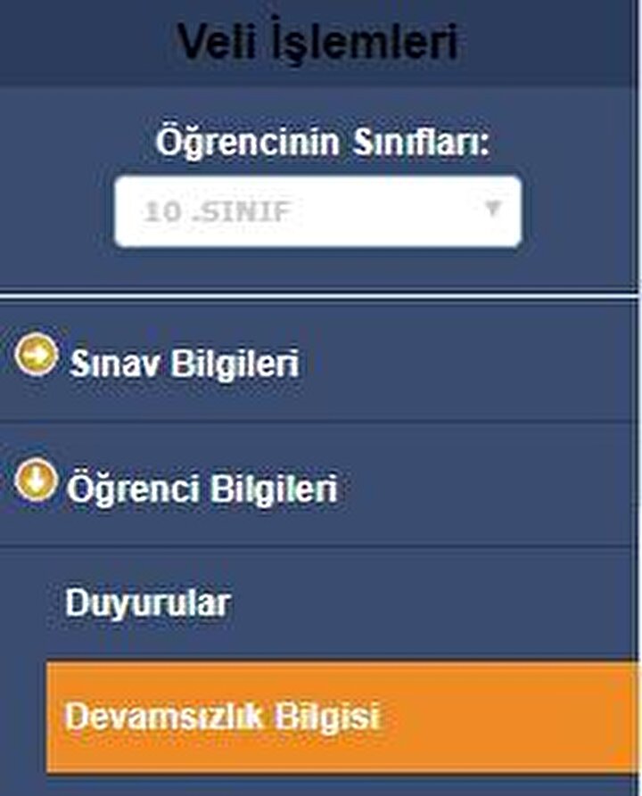 Devamsızlık bilgisi: Öğrencinin hangi günlerde okula gitmediği güncel olarak görülebilir.