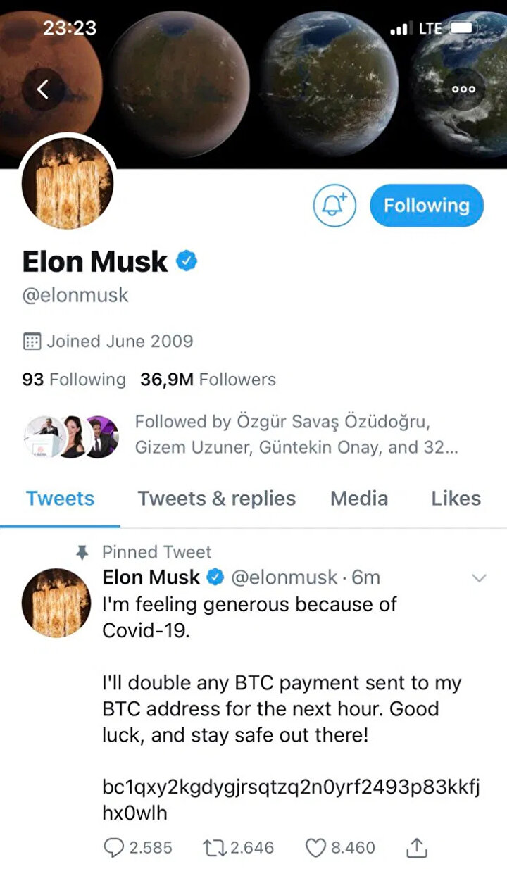 Twitter'da hackledikleri mavi tike sahip hesapta Tesla ve SpaceX'in CEO'su Elon Musk'ın adını ve profil fotoğrafını kullanan siber dolandırıcılar, yüzlerce kullanıcının kripto paralarını çaldı. 270 bin TL değerinde bitcoin çalındığını belirten uzmanlar, mavi tik özelliği hesabın gerçek bir kişiye ait olduğunu gösterse de olası hack girişimlerinde bu hesaplardan yapılan yanıltıcı paylaşımların daha çok inandırıcı olduğunu söyleyerek benzer siber dolandırıcılıklara karşı uyarıyor.
