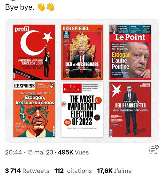 convaincus que le candidat de l'opposition l'emporterait, peut-être même dès le premier tour. Le résultat de dimanche soir a clairement discrédité cette couverture médiatique française qui n'avait laissé que peu de place aux autres scénarios possibles, allant jusqu'à affirmer qu'Erdogan pourrait semer le chaos en refusant de quitter le pouvoir en cas de défaite.