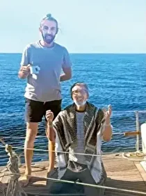 Dieu nous a envoyé, au creux de la mer, de belles personnes qui nous ont offert leurs bienfaits. Commençons par le matin. Au large de la Crète, nous étions à la dérive, moteur arrêté, et je préparais la diffusion YouTube sur le pont, lorsqu’une embarcation qui s’approchait a appelé mon nom. C’était un bateau que je voyais pour la première fois. Comme je connaissais désormais les bateaux de la flottille, j’ai compris rapidement de qui il s’agissait.