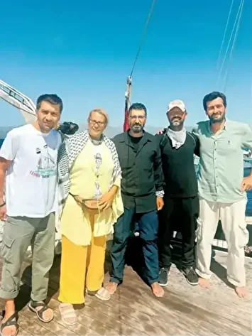 Les regards et les drones étaient tous braqués sur eux. Pour moi, l’essentiel était la présence de notre professeure Ayçin Kantoğlu sur ce bateau. Nous avons salué d’autres activistes. Avec le capitaine Semih Fener, le docteur Osman Çetinkaya, l’universitaire Ayçin Kantoğlu et le professeur ORL Haşmet Yazıcı, nous avons discuté une demi-heure sur le pont principal pendant que notre bateau était ravitaillé. Ils nous ont offert des présents. Ayçin Hoca a préparé le café à la main. Nous avions l’impression d’arriver chez des proches. Ayçin Hoca a immédiatement ouvert les placards et a rempli un sac avec ce qu’elle a trouvé.