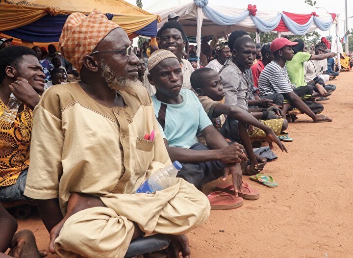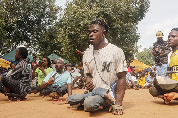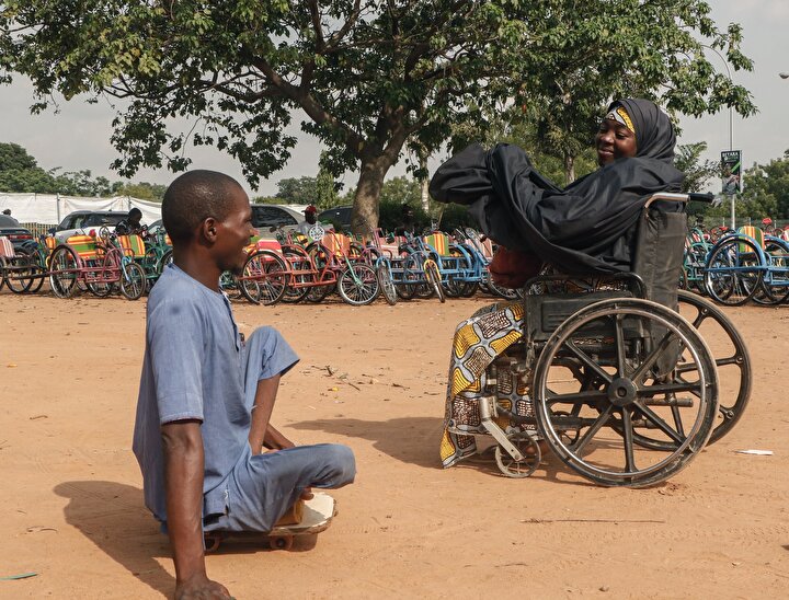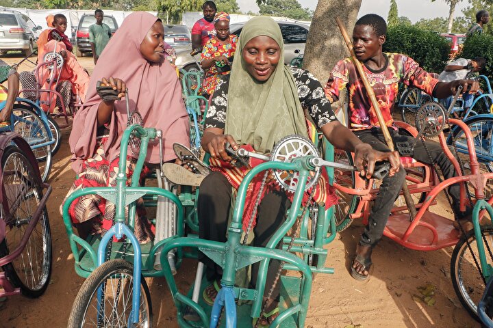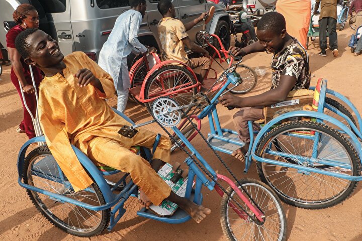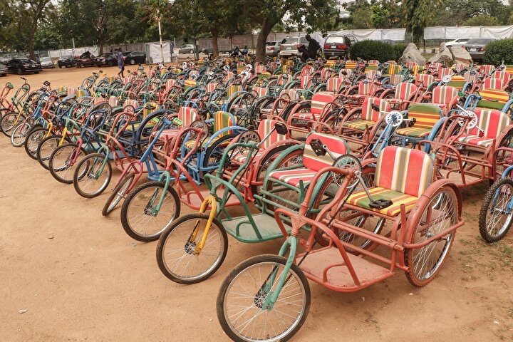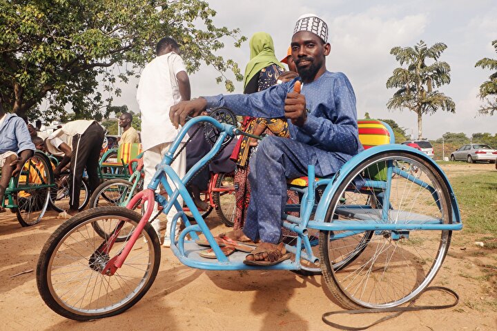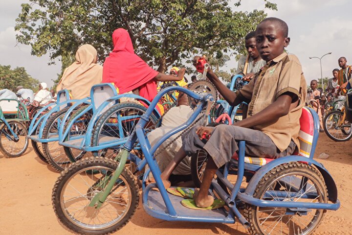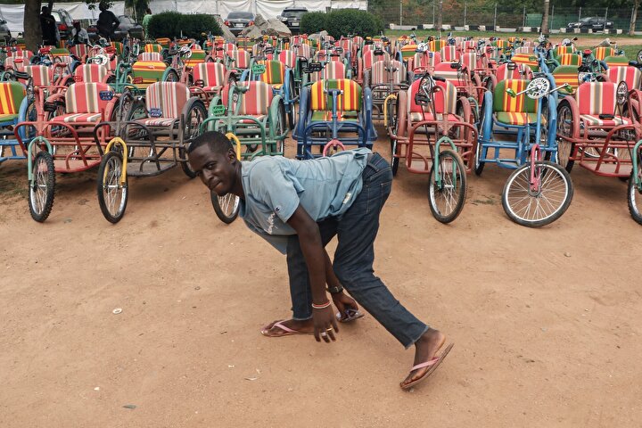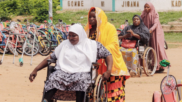 Des personnes en situation de handicap ont reçu des fauteuils roulants distribués dans le cadre d'une campagne d'aide organisée par le président élu du Nigeria, Bola Ahmed Tinubu, à Abuja, au Nigeria.