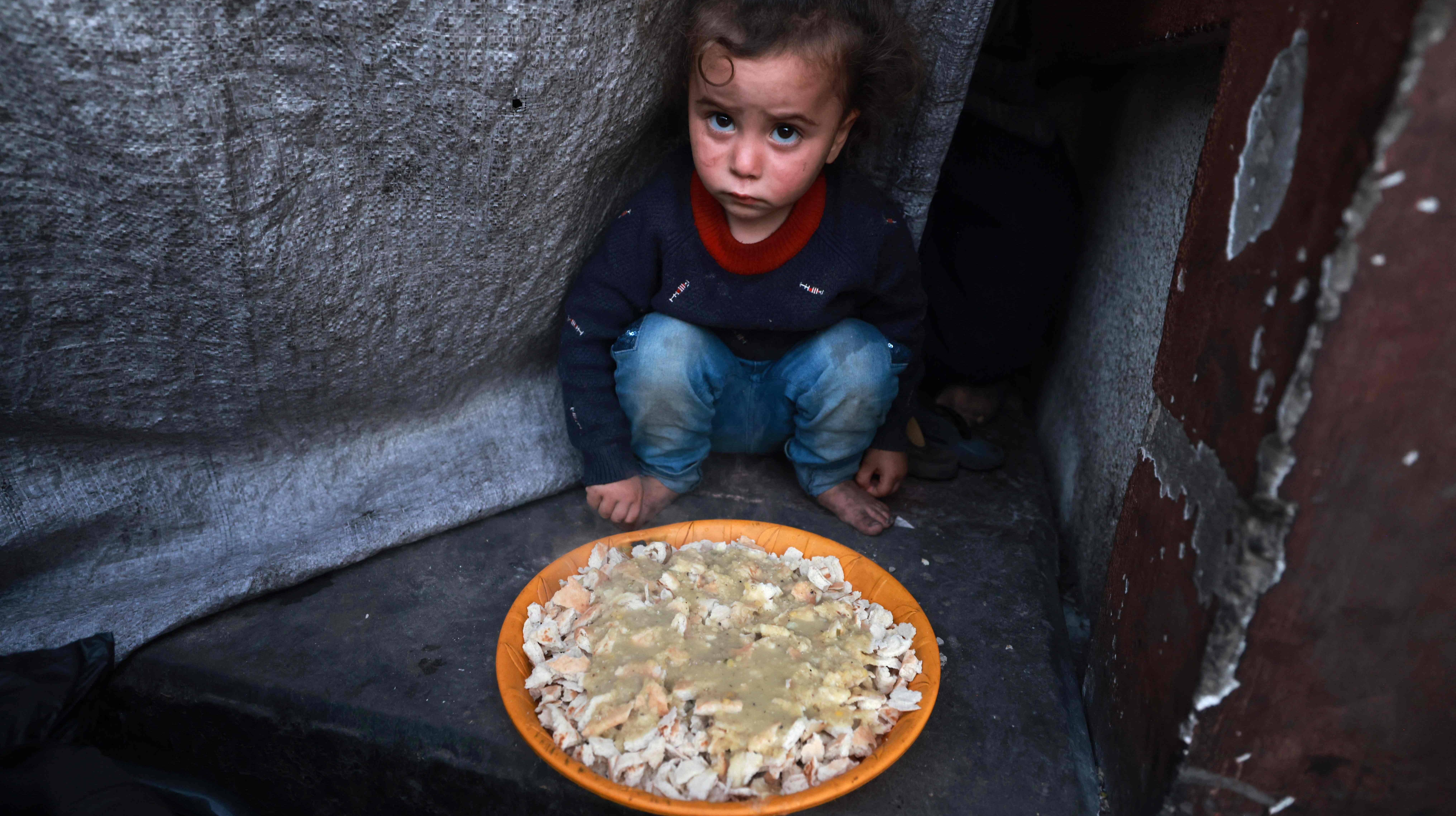 Dans le sud de la bande de Gaza, le 12 mars 2024, des Palestiniens déplacés se préparent pour l'iftar, repas de rupture du jeûne de Ramadan, malgré la guerre et les difficultés d'approvisionnement. Dans des camp improvisés, des hommes et des femmes se relaient pour préparer des assiettes, le plus souvent remplies de bouillie, avec le peu de nourriture qu'ils ont réussi à trouver.