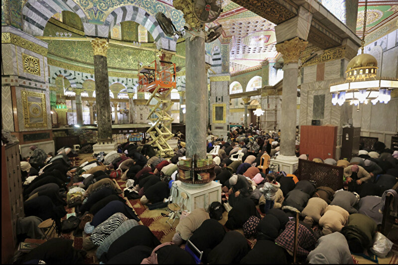 Des témoins oculaires ont déclaré à Anadolu que les forces israéliennes ont fait incursion dans la salle de prière al-Qibla après les prières de Tarawih.