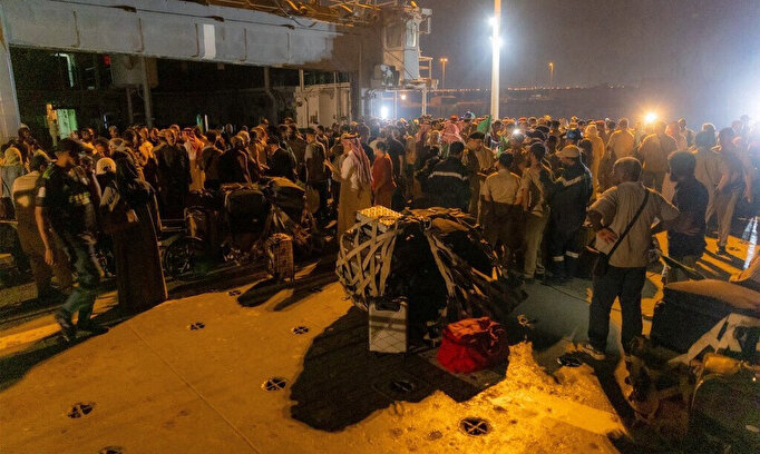 "Nous annonçons l'arrivée de 10 ressortissants saoudiens ce soir (lundi) dans le gouvernorat de Djeddah (ouest du Royaume). Le nombre de ressortissants de pays frères et amis qui ont été évacués a atteint environ 189 personnes des nationalités suivantes, les États-Unis, le Royaume-Uni, la Suède, l'Italie, le Qatar, la Syrie, les Pays-Bas, l'Irak, la Türkiye, la Tanzanie, le Liban, et la Libye, où ils ont été transportés par bateau",