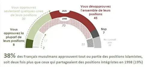 "38% des musulmans français déclarent approuver tout ou partie de leurs positions en 2025"