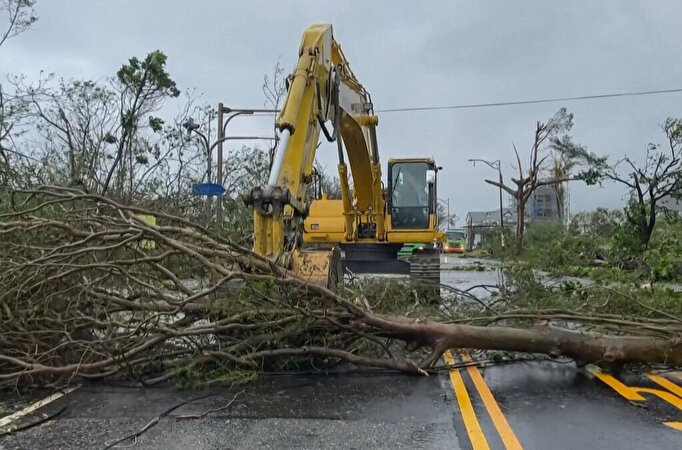 Les médias locaux ont rapporté qu'à Kaohsiung, des routes sont inondées et des arbres déracinés jonchent les rues.
