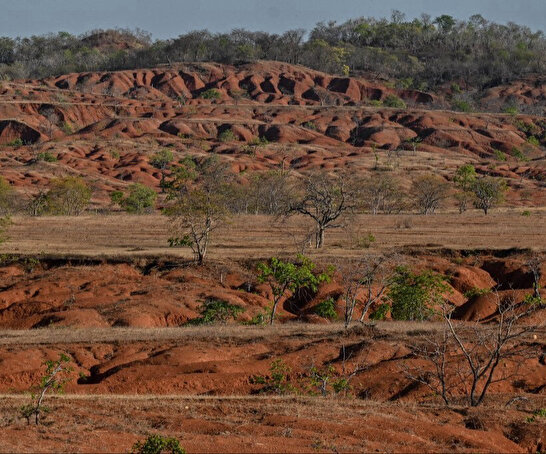 On pourrait appeler ça un paysage lunaire, mais comme la terre fissurée de cratères est rouge, il semble plutôt sorti tout droit de la planète Mars. Bienvenue dans la région de Gilbués, commune du nord-est du Brésil où la désertification avance à grands pas.
