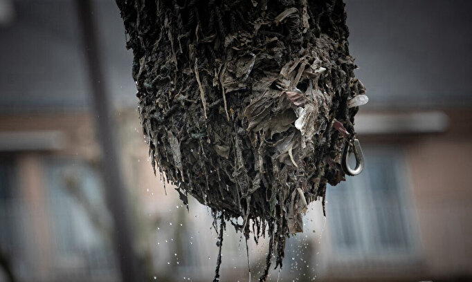 Dans le filet près du Pont Jeanne d'Arc à Rouen entre le 14 avril et le 23 mai 2022, 44% du poids des déchets séchés sont des lingettes, fléau des stations d'épuration.