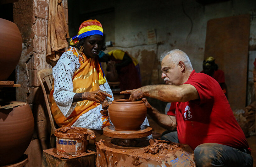 Six femmes, qui fabriquent des poteries selon des méthodes traditionnelles au Tchad, pays d'Afrique centrale, se forment aux techniques modernes de la profession auprès des maîtres de la ville de Menemen, à Izmir, dans l'ouest de la Türkiye, connue dans le monde entier dans ce domaine.