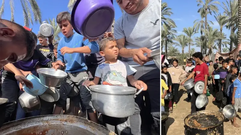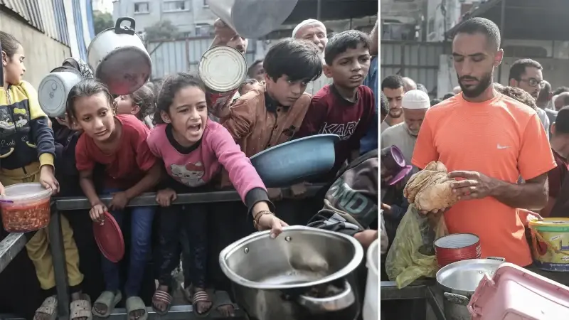 Gazze'de açlıkla mücadele eden Filistinlilere yemek dağıtıldı