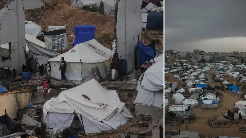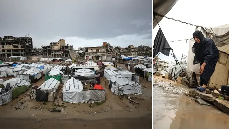 Şiddetli yağış nedeniyle Gazze Şeridi'nde çadırlar su altında kaldı
