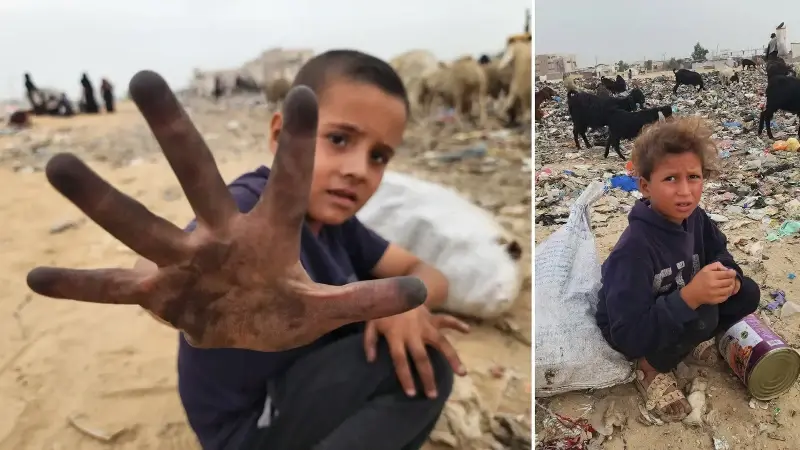 Gazze'de çocuklar yemek için çöp yığınlarını arıyor