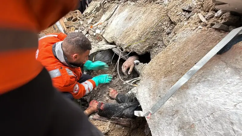 Gazze Şeridi'nde şiddetli yağış nedeniyle çöken binada arama kurtarma çalışmaları sürüyor