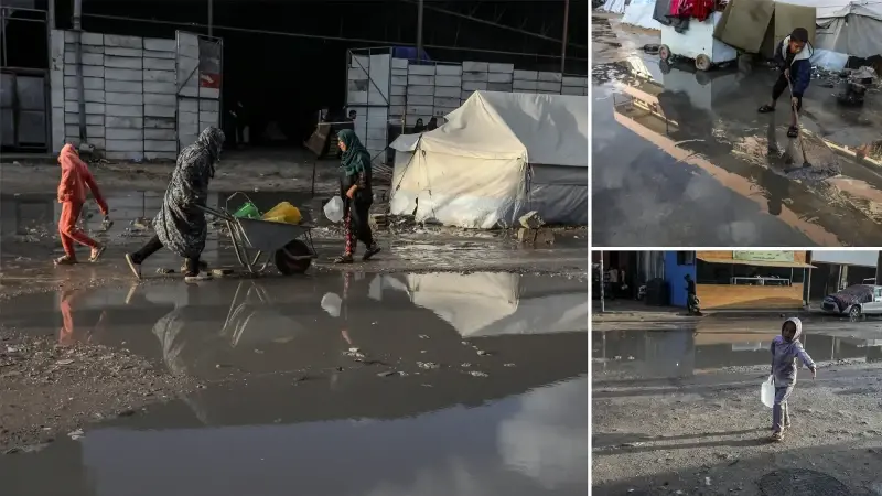 Gazze'nin güneyinde yağmur ve soğuk yerinden edilen Filistinlilerin yaşamını zorlaştırıyor