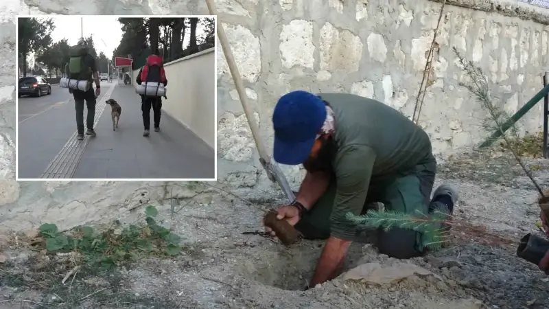 4 yılda 77 il dolaştı: Köpeği ile birlikte tüm Türkiye’yi gezip fidan dikiyor