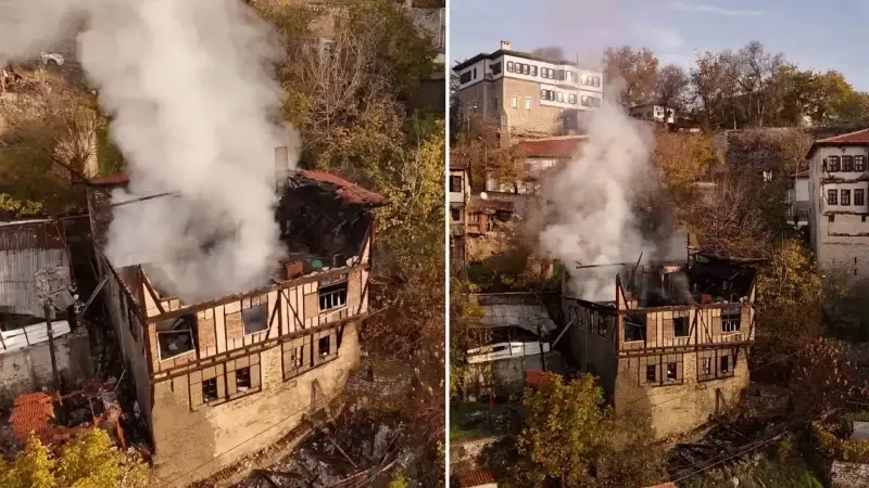 150 yıllık tarihi konaktan geriye kalan harabe dronla görüntülendi