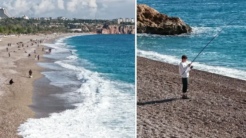Yağmur sonrası Konyaaltı Sahili'nde balık mesaisi başladı: Amatör balıkçılar sahile koştu