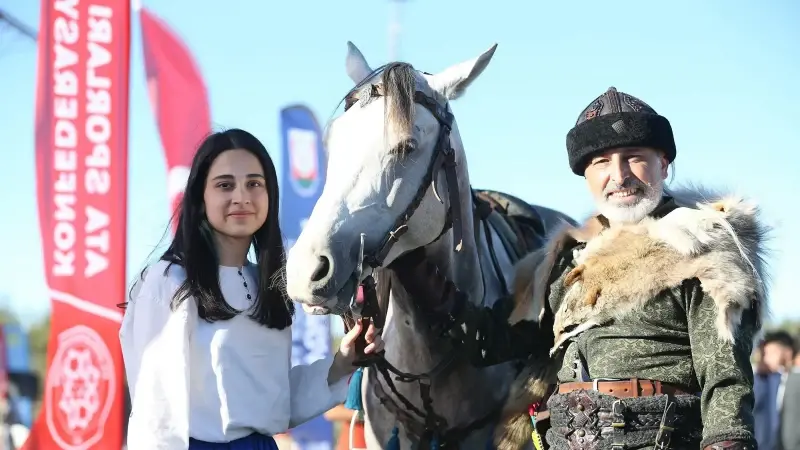 Akrobat baba-kız geleneksel atlı savaş sanatını yaşatıyor