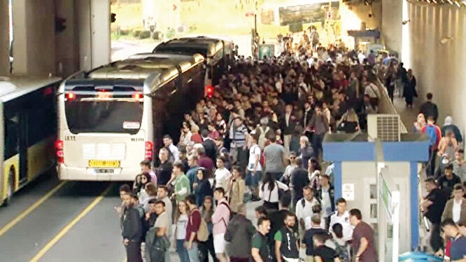- İstanbul’da metrobüs duraklarındaki i zdiham dinmek bilmiyor. Altunizade durağında son günlerde artan yoğunluğun ardından dün de Zincirlikuyu metrobüs durağında insan trafiği ‘kilit’ oldu. Sabah saatlerindeki yoğunluk nedeniyle vatandaşlar zor anlar yaşadı. İstanbullular aktarma noktalarında uzun kuyruklar oluşturdu. Vatandaşlar, metro çıkışlarına da ulaşmakta güçlük çekti.