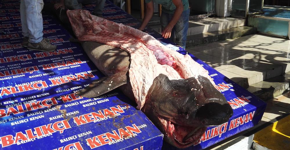 Marmara Denizi'nde avlanan balıkçıların ağlarına takılan yaklaşık 4 metre boyunda ve 1,2 ton ağırlığındaki köpek balığının eti, kanser hastalarına ücretsiz dağıtıldı.