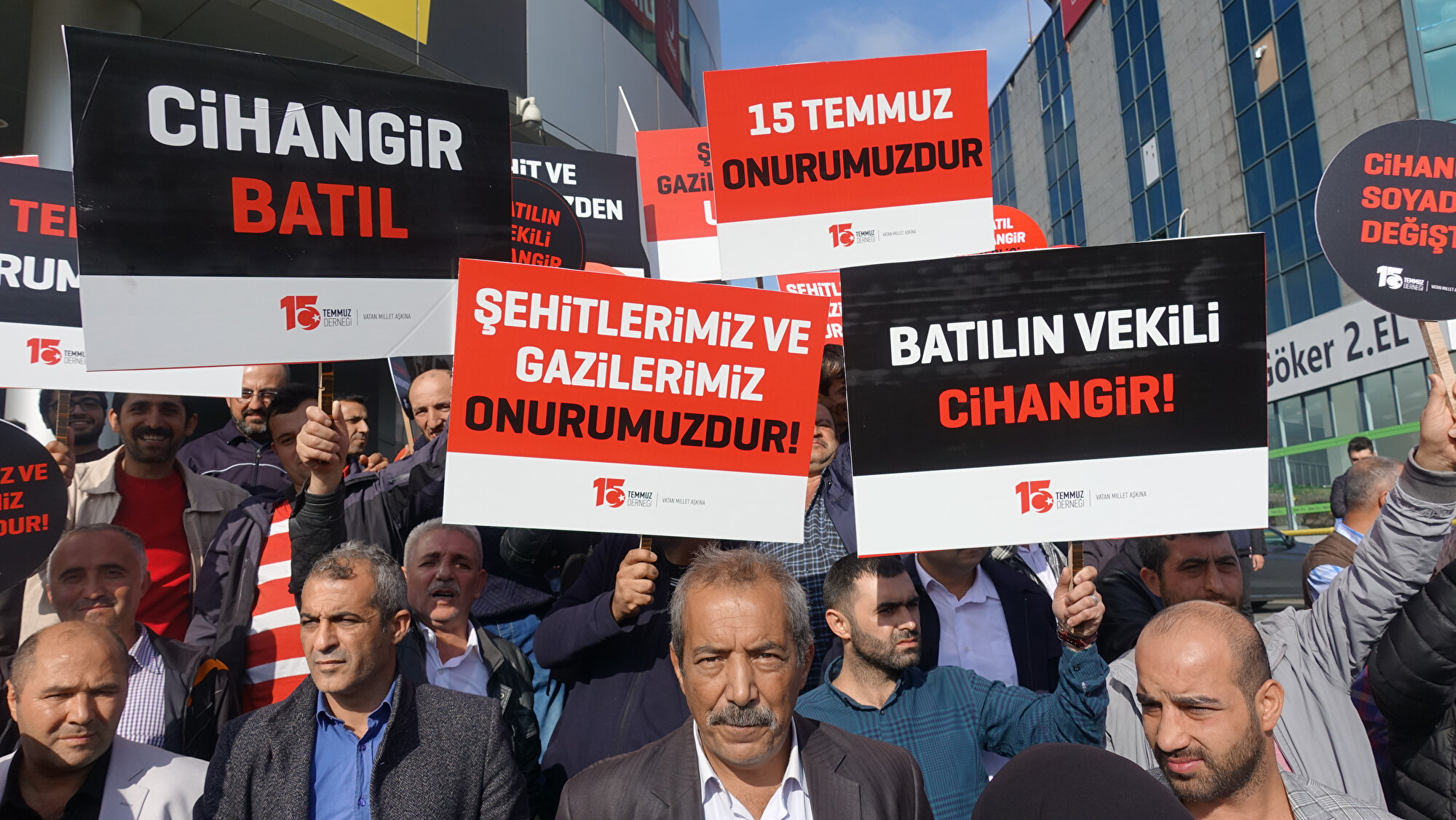 15 Temmuz Derneği üyeleri, Saadet Partisi İstanbul Milletvekili Cihangir İslam’ın mecliste yapmış olduğu konuşmada "15 Temmuz" hakkındaki söylemlerini protesto etti.