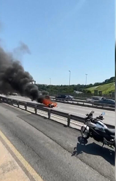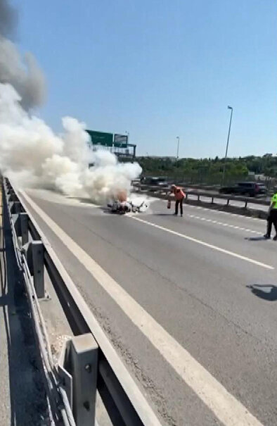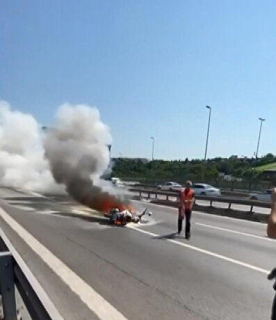 Sürücüsünün terk ettiği motosiklet yol ortasında alev alev yandı. Olay itfaiye ekiplerine ihbar edilirken köprüde bulunan görevliler ve polisler tarafından yangın söndürme tüpü ile yangına müdahale edildi. Yanan motosiklet müdahale ile söndürüldü.