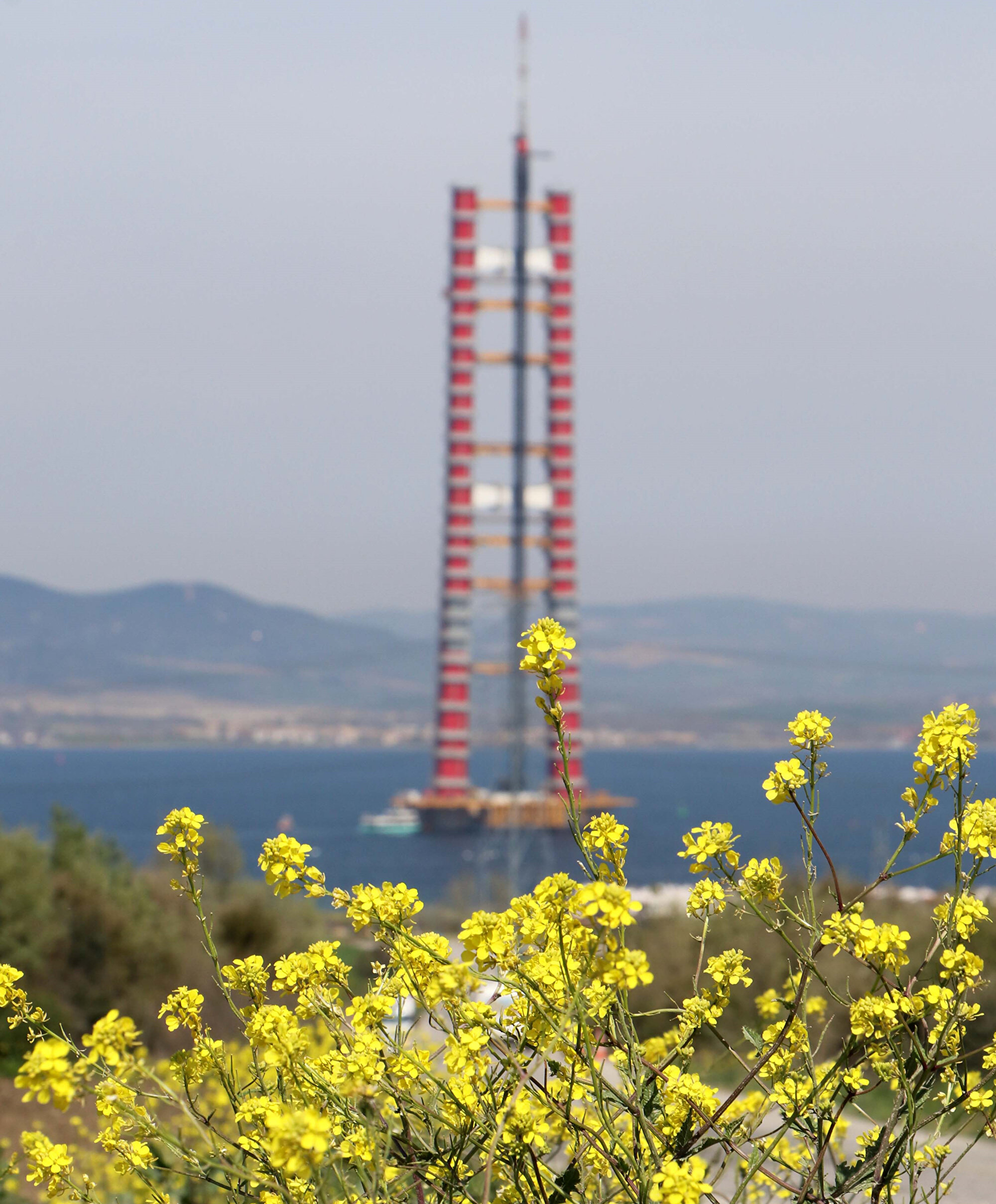 Aradan geçen yaklaşık 8 ayda Lapseki ve Gelibolu yakasında deniz içerisindeki kule kesonları üzerine önceki gün 26’ncı blokların montajı da yapıldı. Böylece köprü ayaklarının yüksekliği 250 metreye ulaştı. Toplam yüksekliği 318 metre olarak planlanan kulelerin tamamlanmasına 68 metre kaldı. 318 metrelik kulelerin haziran ayında tamamlanması, yaz sonunda ise köprüde kablo örme çalışmalarına başlanması planlanıyor.