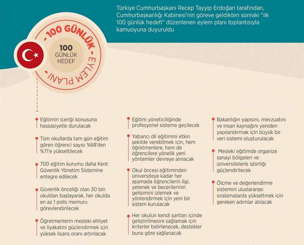 "Okul öncesi eğitiminden üniversiteye kadar her aşamada öğrencilerimizin ilgi, yetenek ve becerilerinin gelişimini izlemek ve yönlendirmek için yeni bir sistem kuruyoruz. Bu çalışmaya, Gençlik ve Spor ile Kültür ve Turizm bakanlıklarımız da destek veriyor. Bakanlığın yapısını, mevzuatını ve insan kaynağını yeniden yapılandırmak için büyük bir veri sistemi oluşturuyoruz. Her okulun kendi şartları içinde geliştirilmesini sağlamak için kriterler belirliyor, destekleri buna göre sağlıyoruz. Mesleki eğitimde organize sanayi bölgeleri ve üniversitelerle iş birliğini güçlendiriyoruz. Ölçme ve değerlendirme sistemimizi uluslararası sıralamalarda yükseltmek için gereken adımları da atıyoruz."