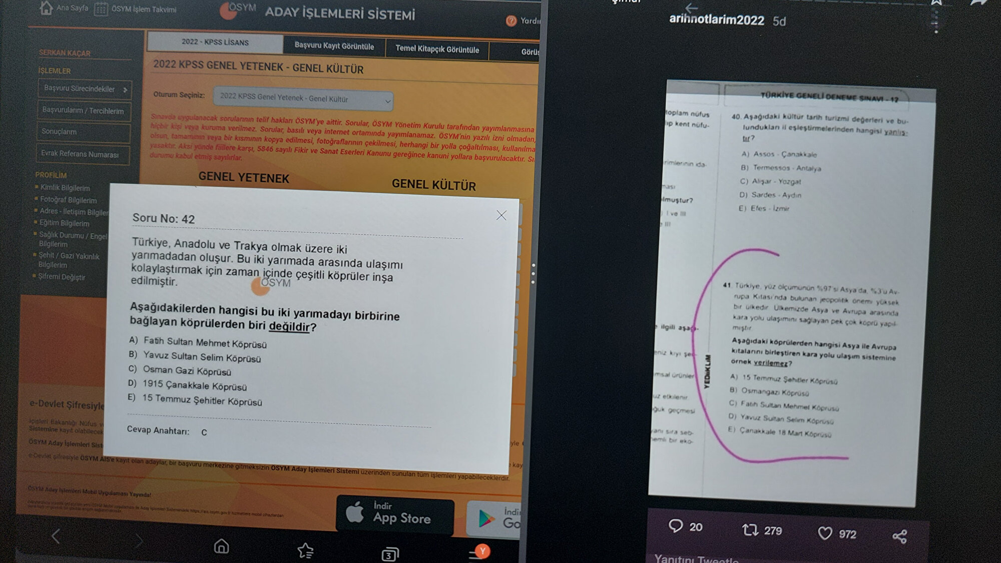 Kamu Personeli Seçme Sınavı'nın pazar günü gerçekleştirilmesinden sonra ÖSYM KPSS cevap anahtarının belli bir kısmını açıkladı. ÖSYM'nin paylaştığı sorularla karşılaştırma yapan bazı adaylar, ilginç bir sonuçla karşılaştı.