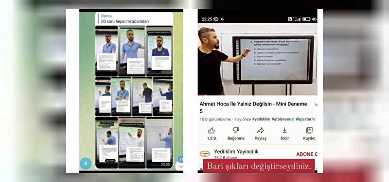 Sınava giren adayların da yaptığı paylaşımlarda Yediiklim imzasını taşıyan deneme sınavı ile ilgili soruların KPSS'de sorulduğu, hatta şık seçeneklerinin bile birebir aynısı olduğu görülüyor.