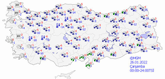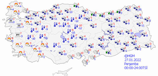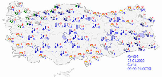 Soğuk ve yağışlı hava ülke genelinde etkisini gösterirken çok sayıda il yoğıun kar yağışlarının ardından adeta kara gömüldü. Kimi illerde kar kalınlıkları iki metreyi aştı. İstanbul'da ise dün gece etkisini yeniden artıran kar yağışı sonrası ulaşımda ciddi aksamalar meydana geldi. Hem Meteoroloji Genel Müdürlüğü'ne hem de küresel hava tahmini sistemine göre; karlı ve soğuk hava kuvvetini artırarak 3. dalgaya neden olacak. Bugün öğle saatlerinde Karadeniz'de başlayan siklon en büyük etkisini İstanbul’da gösterecek. Soğuk hava kütlelerinin yoğun kar yağışına sebep olması bekleniyor. İşte ülke genelinde il il hava durumu..