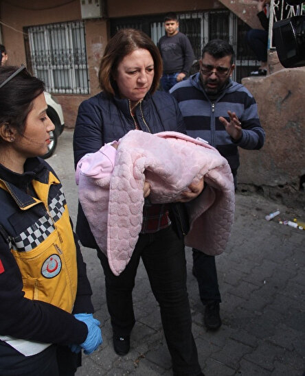 Bunun üzerine Ayşe E. kızını alıp kundağına kendi ismini, telefon numarasını ve adresini yazarak kaynının evinin kapısına bıraktı. Bakkaldan gelen kaynının oğlu bebeği görüp içeri alırken ailesi polise haber verdi.