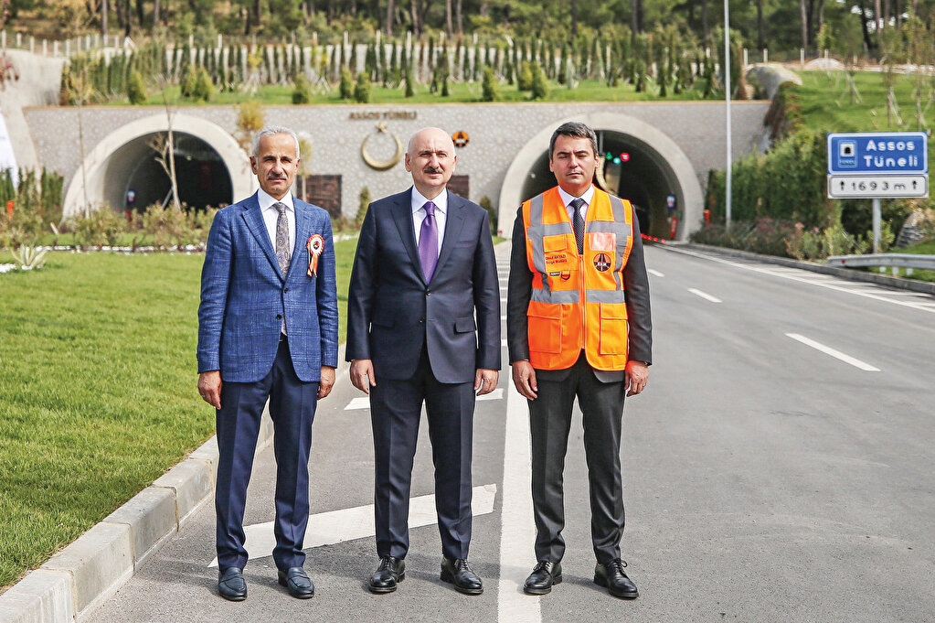 "Geçtiğimiz Mart ayında hizmete açtığımız 1915 Çanakkale Köprüsü ile bölgede hızlanan trafiğe cevap verecek, yatırım bedeli 4,6 milyar lira olan bir projeyi daha şehrimize kazandırmış oluyoruz. Açtığımız tüneller sayesinde Kaz Dağları'nın o muhteşem tabiatına en küçük bir zarar vermeden Ayvacık-Küçükkuyu arasındaki mesafeyi yaklaşık 2,5 kilometre kısalttık. Daha önce 50 dakika süren yolculuğun 5 dakikaya inmesiyle hem zamandan hem yakıttan hem emisyondan elde ettiğimiz kazanç, yılda 133 milyon liraya tekabül ediyor. Vatandaşlarımıza, konforu artan, güvenliği yükselen, süresi kısalan bir seyahatle sevdiklerine ulaşabilecekleri eserleri kazandırmayı sürdüreceğiz." Erdoğan, açtıkları yolla, bölgede artık bölünmüş yol standardına sahip olmayan ana güzergah bırakmadıklarını dile getirdi. Erdoğan, tünellerin giriş ve çıkışlarında yapılan kaplamalar ve rölyeflerin, projeye ayrı bir güzellik kattığına inandığını ifade etti.