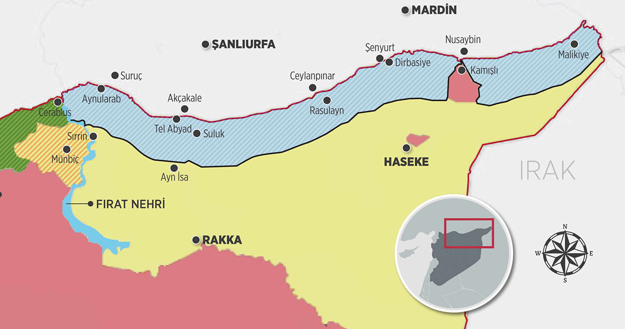 - Cumhurbaşkanlığı Sözcüsü İbrahim Kalın, Suriye’de kurulacak güvenli bölgenin kontrolünün Türkiye’de olacağını vurguladı. Kalın, Cumhurbaşkanlığı Kabine Toplantısı devam ederken açıklamalarda bulundu. Güvenli bölgeye Mehmetçik’in konuşlanacağını, istihbari faaliyetlerin yanı sıra yerel halkın da sürece dahil edileceğini kaydeden Kalın şöyle devam etti: Cerablus-El Bab hattında, Afrin'de ve oradan İdlib'e uzanan coğrafyada bu gerçekleştirilmiş durumda. Adına güvenli bölge denmese de şu anda fiilen orada Türkiye'nin kontrolünde bir güvenli bölge hattı var. Baktığınız zaman bu saydığım coğrafya içerisinde ne rejim unsurları var ne PKK/PYD/YPG unsurları var ne de DEAŞ unsurları var. Buralar güvenli bir bölge halinde yerel halk, yerel kent konseyleri tarafından yönetilmekte. Benzer bir model Münbiç'te ve Fırat'ın doğusunda da rahatlıkla uygulanabilir.