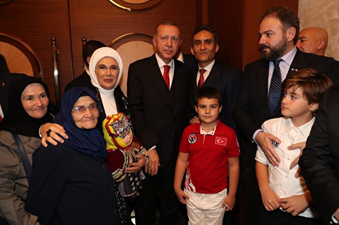 Ankara’da Cumhurbaşkanı Recep Tayyip Erdoğan ve eşi Emine Erdoğan ile bir araya gelen Şahizar Teyze ve ailesi hatıra fotoğrafı çektirerek, Keles bebeği hediye etti.
