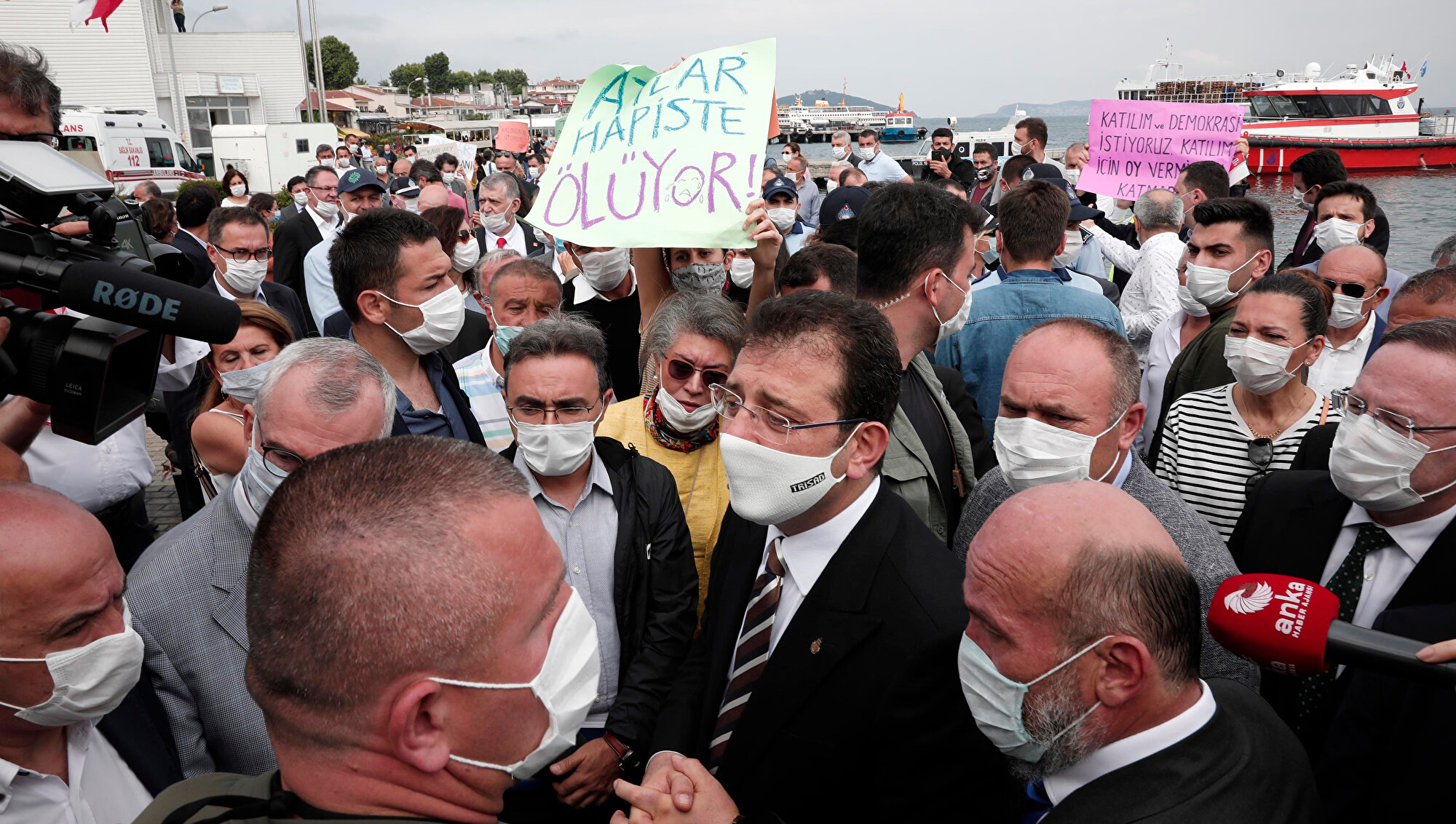 Test sürüşü için Büyükada'ya gelen İmamoğlu'na protesto