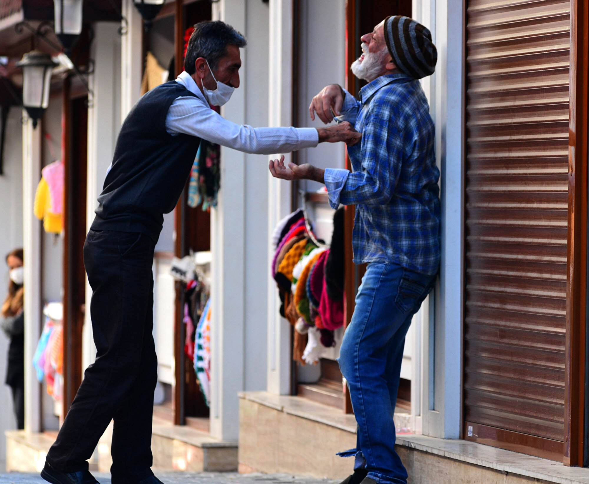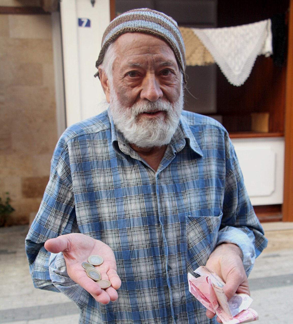 Şen, yanında getirdiği eski kıyafetleri giyerek kentin en işlek caddelerinde rol yapıp, kendisini acındırarak para dilendi.