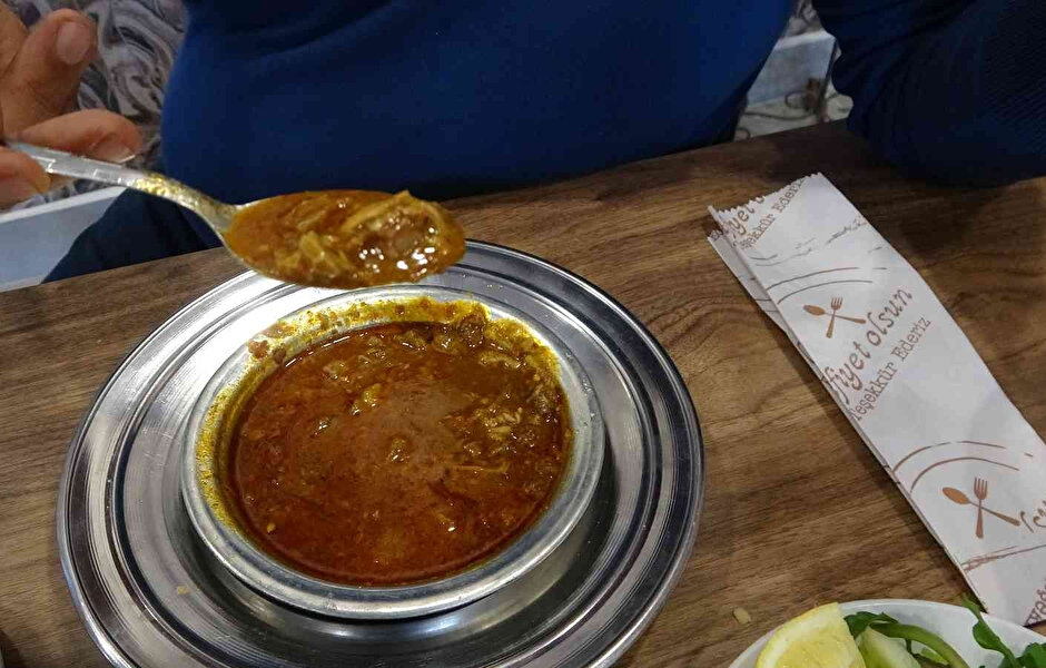 3 yıldır iş yerinde çalışan Mehmet Ünlü, "Burada hiç birimiz korona olmadı. Ayda bir testte oluyoruz. İçindeki baharatlar, sarımsak ve kelle paçanın şifası diye düşüyoruz. Daha 3 yıldır kırgınlık bile olmadı günlük tüketiyorum” diye konuştu.