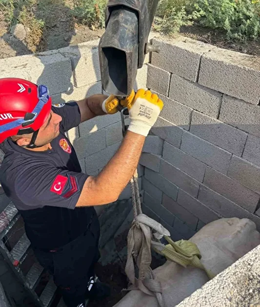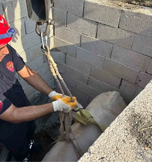 Adana’nın Ceyhan ilçesinde tuvalet kuyusuna düşen boğa itfaiye ekipleri tarafından kurtarıldı.