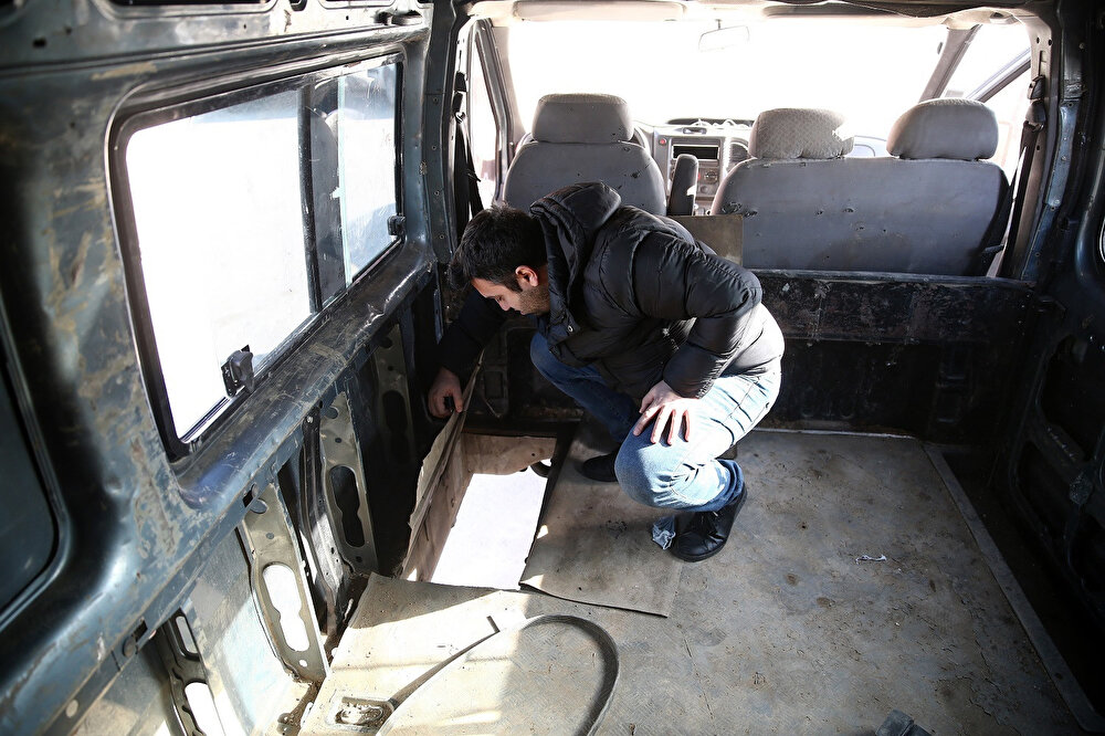 Ekipler, kamyonetin sürücü koltuğunun arkasında, aracın kasa kısmının altı kesilerek aşağı inmek için özel oluşturulmuş bir bölüm kurulduğunu tespit etti.