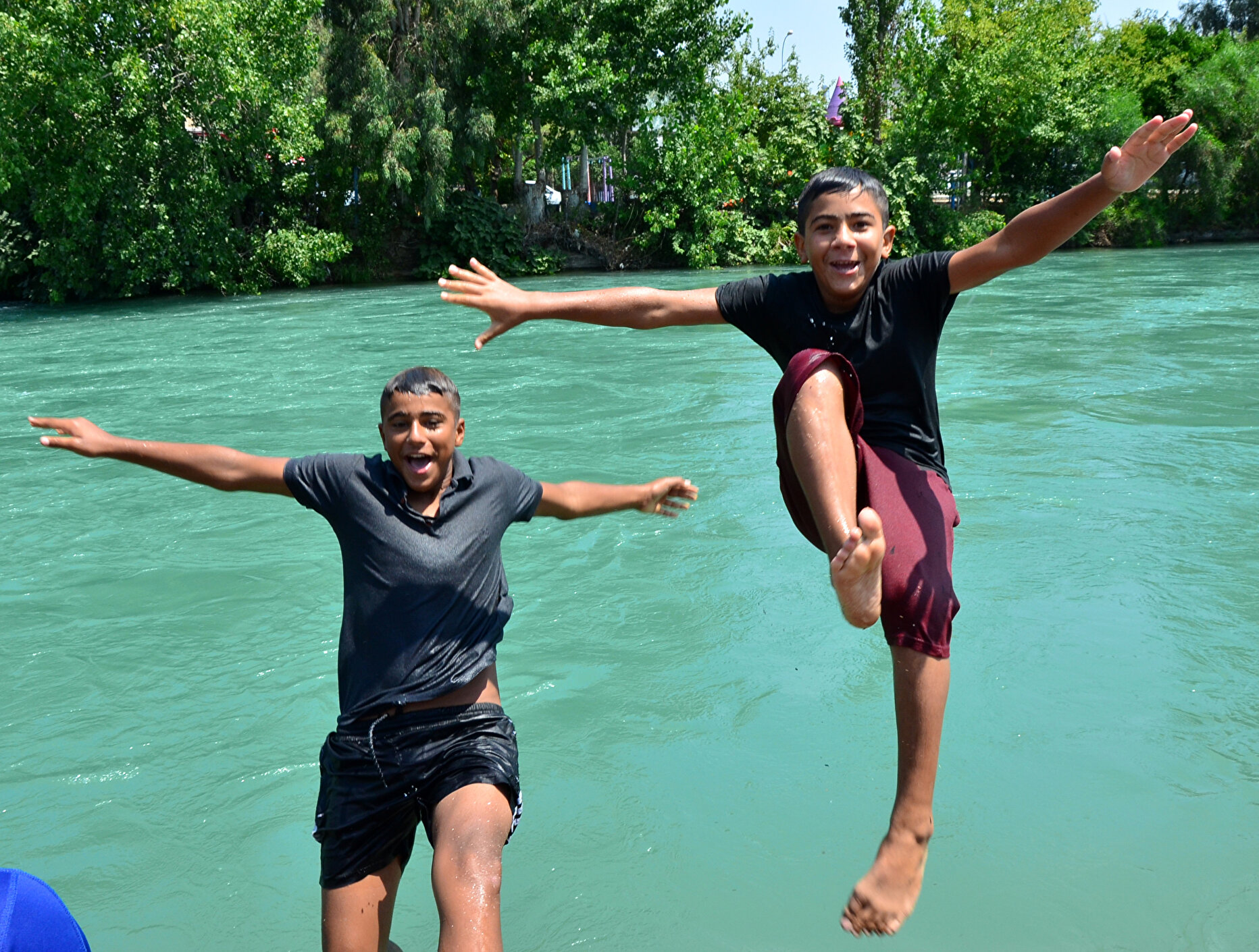 Termometrelerin 43 dereceyi gösterdiği kentte, serinlemenin yollarını arayan bazı vatandaşlar parklardaki gölgelik alanlara sığınırken, bazı çocuklar ve gençler ise tehlikelere aldırış etmeden sulama kanallarında yüzdü. Gençlerin, her yıl onlarca kişinin boğulduğu sulama kanallarına atlarken yaptığı akrobatik hareketler dikkat çekti. Başka bir vatandaş ise sıcaktan bunalan köpeğini serinlemesi için sulama kanalına soktu.