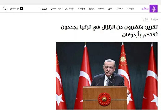 Al Jazeera, 'Türkiye'deki depremzedeler Erdoğan'a güven tazeliyor' başlığıyla AFP'nin haberine yer verdi.