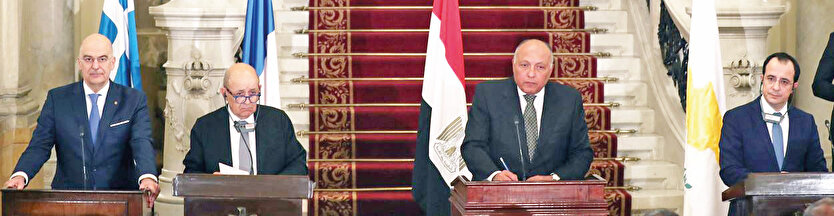 Her satırında Türkiye’nin hedef alındığı 9 maddelik deklarasyon, bir etkisi ve hükmü bulunmasa da Türkiye’nin Doğu Akdeniz’deki artan gücü karşısında çaresizliğin ifadesi olarak dikkat çekiyor. Dışişleri Bakanlığı 5 ülkenin tuhaf eylemini, ‘hesapları Türkiye tarafından bozulduğunda hezeyana kapılan bir grup ülkenin iki yüzlülüğünün ibretlik bir örneği’ sözleriyle niteledi. Dışişleri Sözcüsü Hami Aksoy, bildiriye şöyle tepki gösterdi: “Yunanistan ve GKRY’nin Doğu Akdeniz konusunda ülkemizle ve KKTC ile diyaloğa girmek yerine, konuyla ilgisiz bölge dışı aktörlerden medet ummaları, ancak mandacı ve sömürgeci bir mantığın eseri olabilir. Türkiye’nin uluslararası hukuk temelinde meşrû menfaatlerini korumak amacıyla attığı adımların haksız ve hukuksuz gerekçelerle çarpıtılması asla kabul edilemez. Aynı durum keza Mısır için de geçerlidir. Bu ülke yöneticileri kendi halkının menfaatlerini ve haklarını korumak yerine, bunlardan çoktan feragat etmeyi tercih etmiş gözükmektedir. Doğu Akdeniz’le hiçbir alakası olmayan Birleşik Arap Emirlikleri’ni ise diğer ülkelerle bir araya getiren, Türkiye düşmanlığından başka bir şey değildir. Bu ülkenin hem bize hem Libya’ya karşı sabıkası bellidir. Barış Pınarı Harekâtımızla Suriye’de bir terör devletçiği kurma emellerine ağır bir darbe vurduğumuz Fransa’nın ise, bu ruh hali içinde Türkiye’ye karşı oluşturulan şer ittifakının hamiliğine soyunduğu anlaşılıyor.”