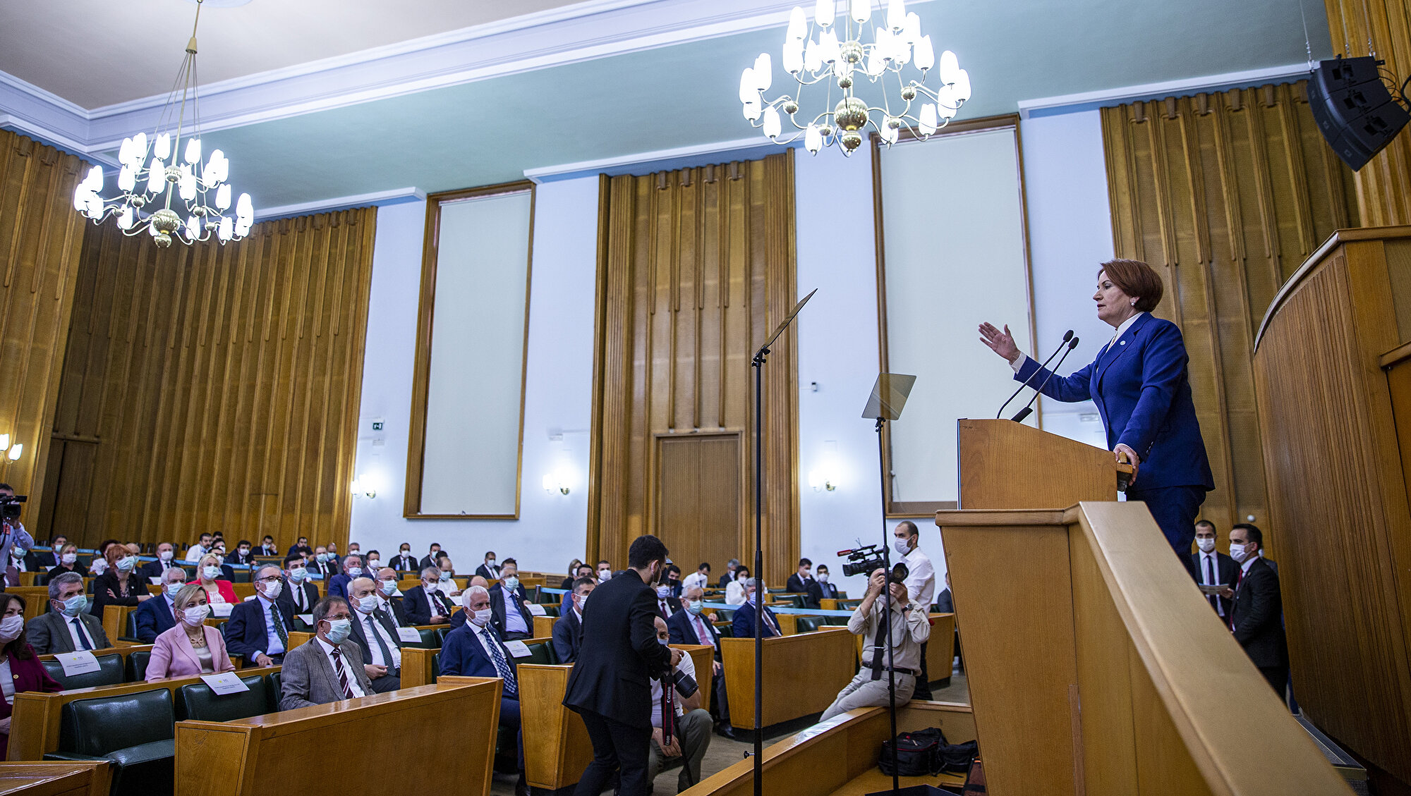 İYİ Parti Genel Başkanı Meral Akşener, koronavirüs tedbirleri kapsamında konuşması haricindeki süre içinde maske taktı.