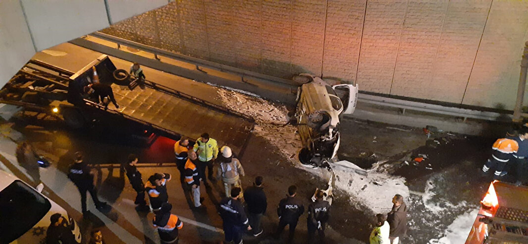 Kaza sırasında alt yola düşen otomobil ise çekici ile bulunduğu yerden kaldırıldı. Kazada otomobilin çarparak yerinden kopardığı demir korkuluklar ise belediye ekiplerince yerinden söküldü. Yaklaşık 1 saat boyunca ulaşıma kapanan yol, belediye ekiplerinin yolu temizleme çalışmaları sonrası yenide trafiğe açıldı.