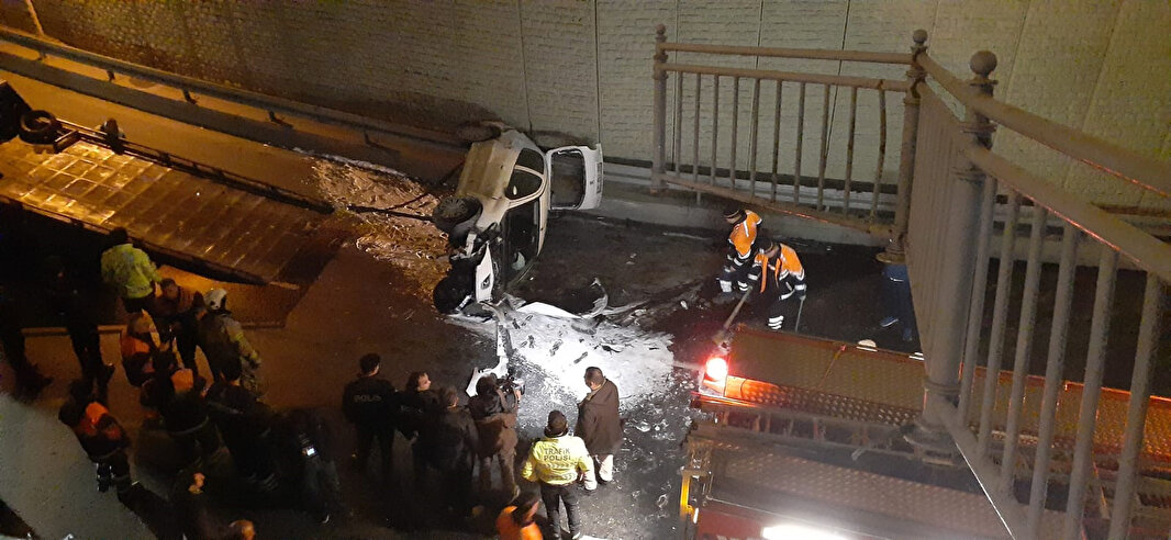 Zeytinburnu'nda sürücüsünün direksiyon hâkimiyetini kaybettiği otomobil yaklaşık 10 metrelik köprüden alt yola uçtu. Kazada otomobil içerisinde sıkışan sürücü itfaiye ekiplerince kurtarıldı. Hastaneye kaldırılarak tedavi altına alınan sürücünün 2.65 promil alkollü olduğu belirlendi.