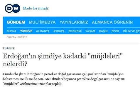 Cumhurbaşkanı Recep Tayyip Erdoğan, Karadeniz'de Fatih sondaj gemisi tarafından 135 milyar metreküplük yeni doğal gaz rezervi bulunduğunu açıkladı. Alman medya kuruluşu Deutsche Welle (DW), söz konusu gelişme öncesinde yaptığı haberde, "Erdoğan'ın açıklamalarına uzmanlar tepkili" ifadelerini kullandı. Aynı kurum, geçtiğimiz dönemde İtalya tarafından Kıbrıs açıklarında bulunan aynı büyüklükteki gaz rezervi için ise, "En büyük rezerv keşfedildi" ifadelerini kullanmıştı.